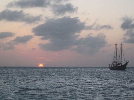 The perfect point in Aruba, sunset as the boats float by